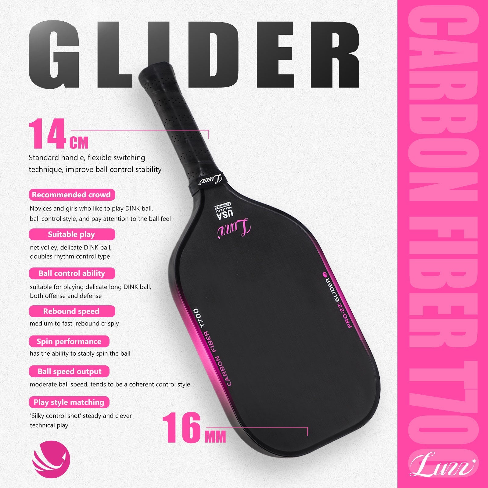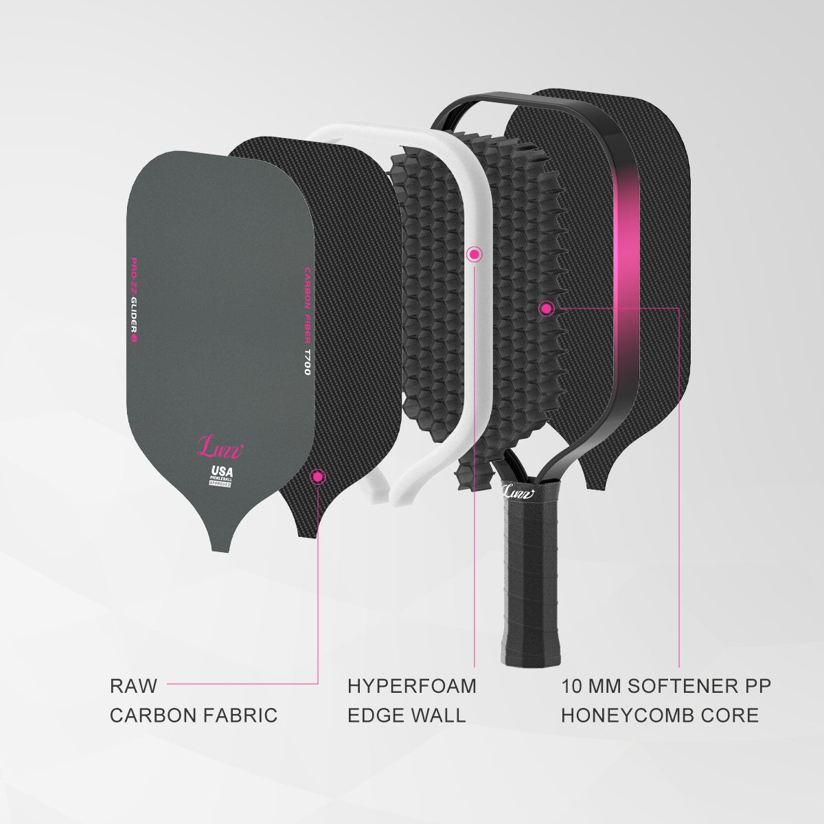 Luzzpickleball Glider Paddle T700 Carbon Friction Surface|Thermoformed