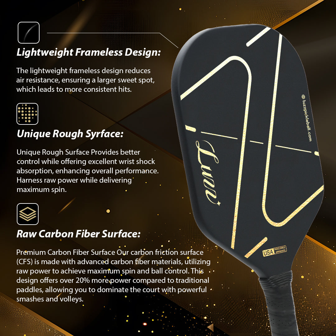 Luzzpickleball ZZ Frameless Paddle(14mm)T700 Carbon Friction Surface|Thermoformed