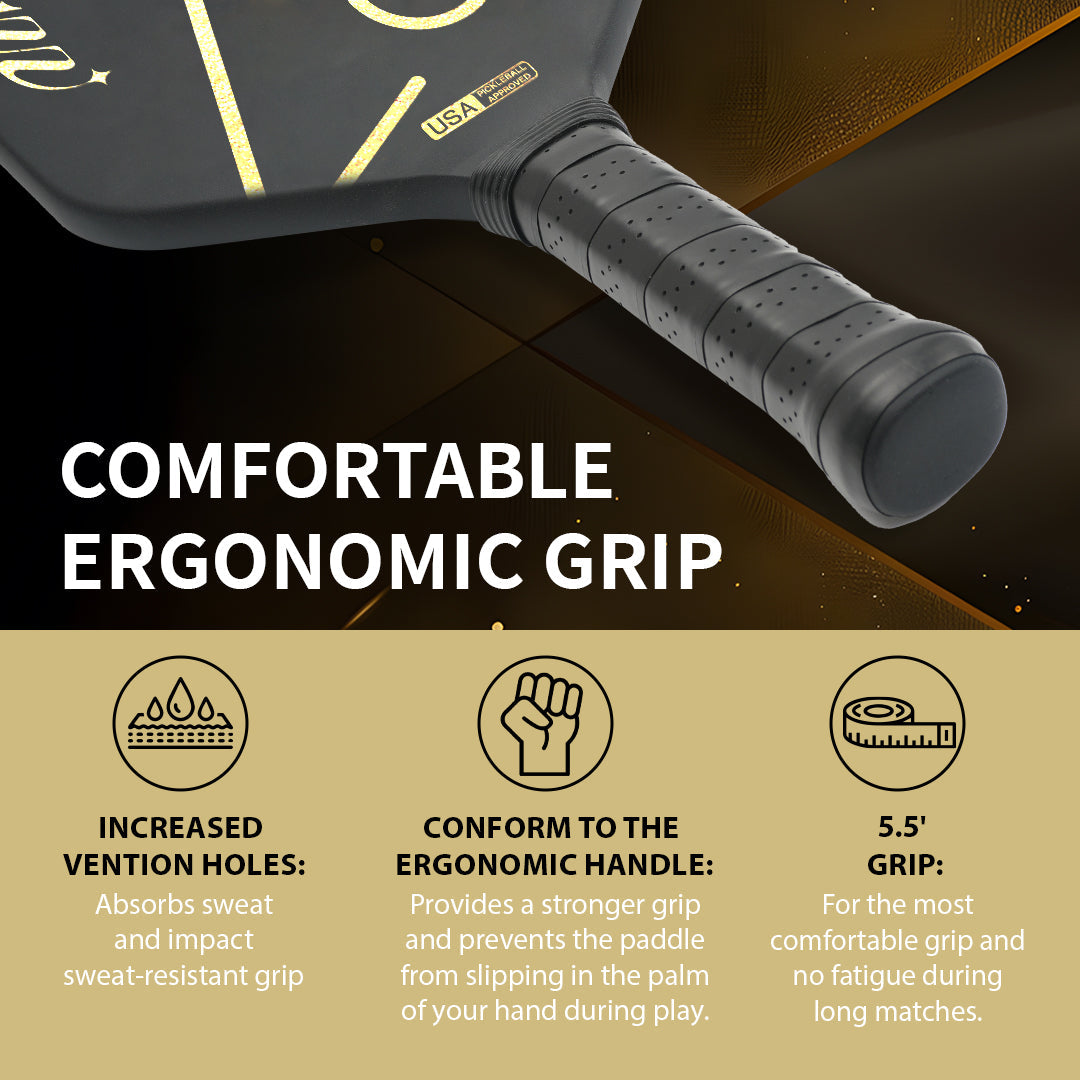 The paddle’s advanced T700 carbon fiber surface, augmented with a durable sandblasting layer, enhances friction to keep the ball on your paddle longer. This leads to improved control, precision, and spin, providing 20% more power compared to traditional paddles. Ideal for enhancing your serves, shots, and taps, this feature sets a new standard for serious players.