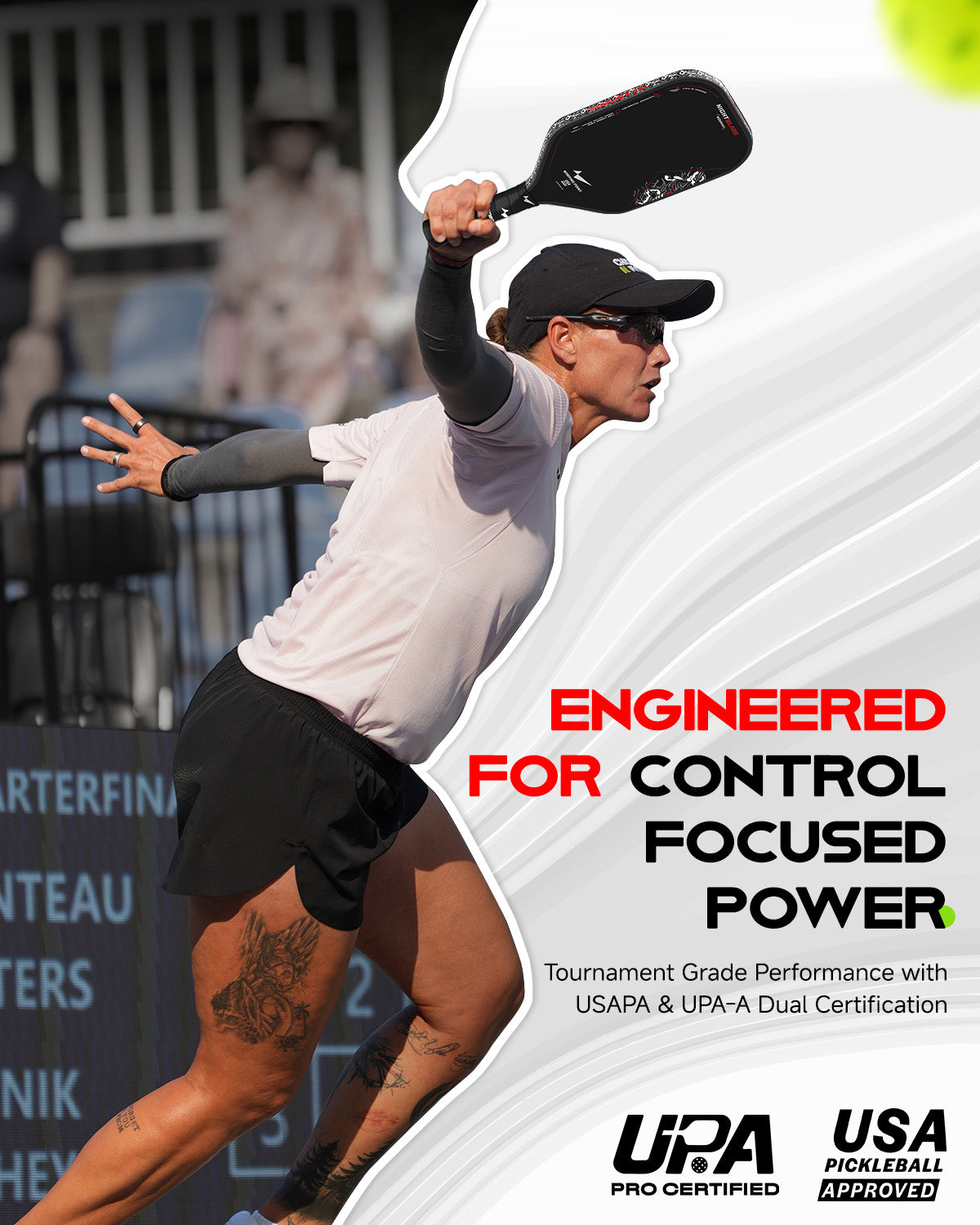 Manufactured with attention to detail, our paddle offers exceptional control and confidence-inspiring feel, making it ideal for strategic plays and aggressive drives. The distinctive design doesn’t just look classy, it also plays like it.