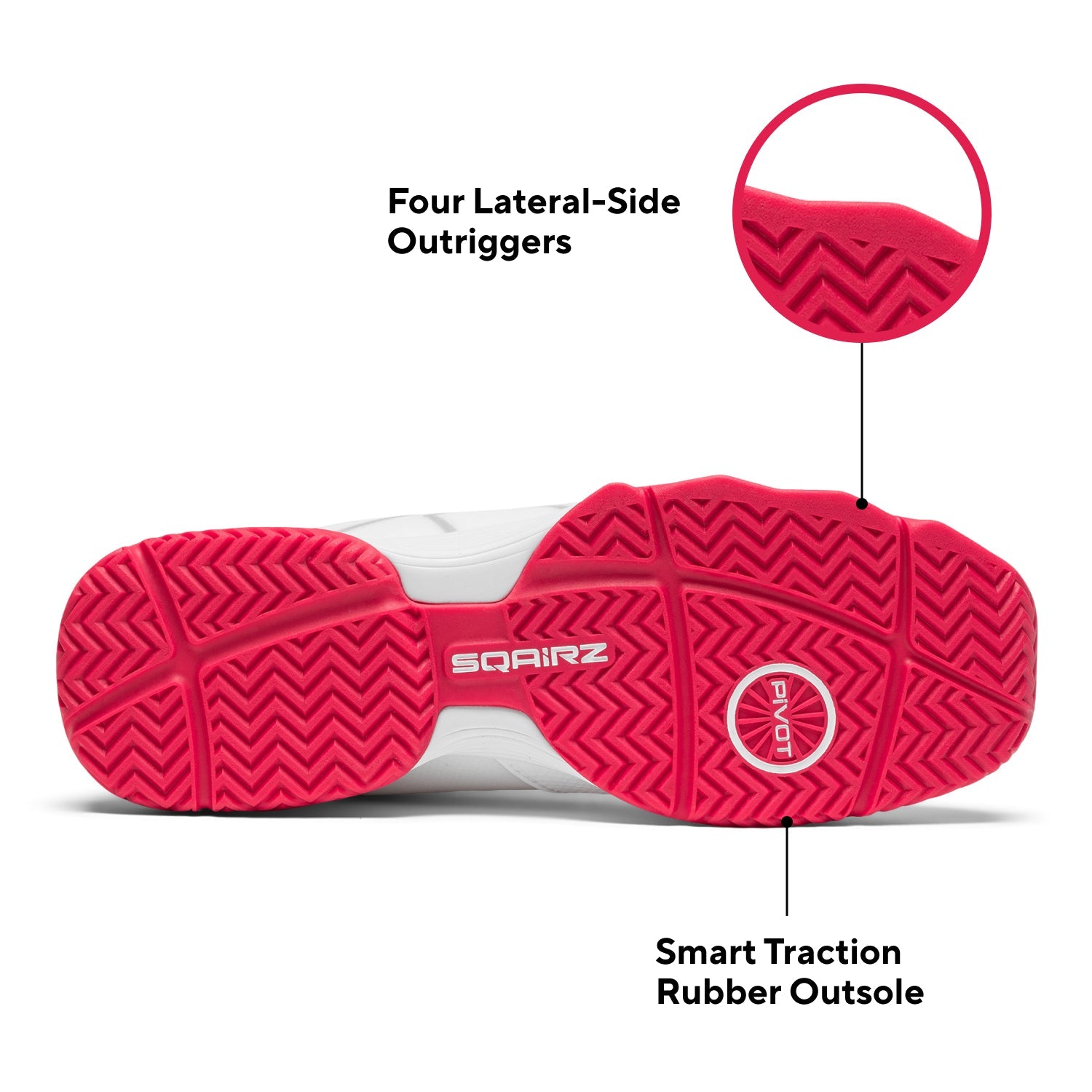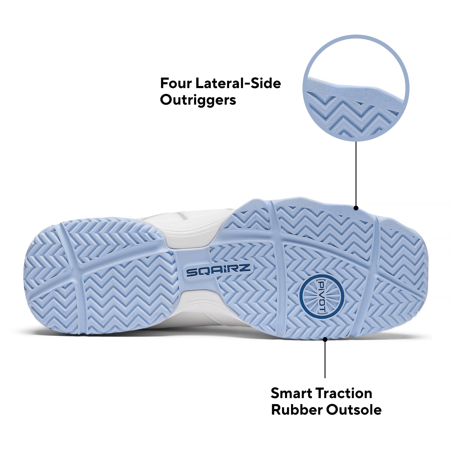 • Designed for all court types, the durable Smart Traction rubber outsole includes a multi-directional herringbone tread for secure traction and four lateral side outriggers on the forefoot to prevent rollover during slides or push-offs. Forefoot pivot points allow you to rotate smoothly without losing grip, and flex grooves in the forefoot and heel support natural foot movement.